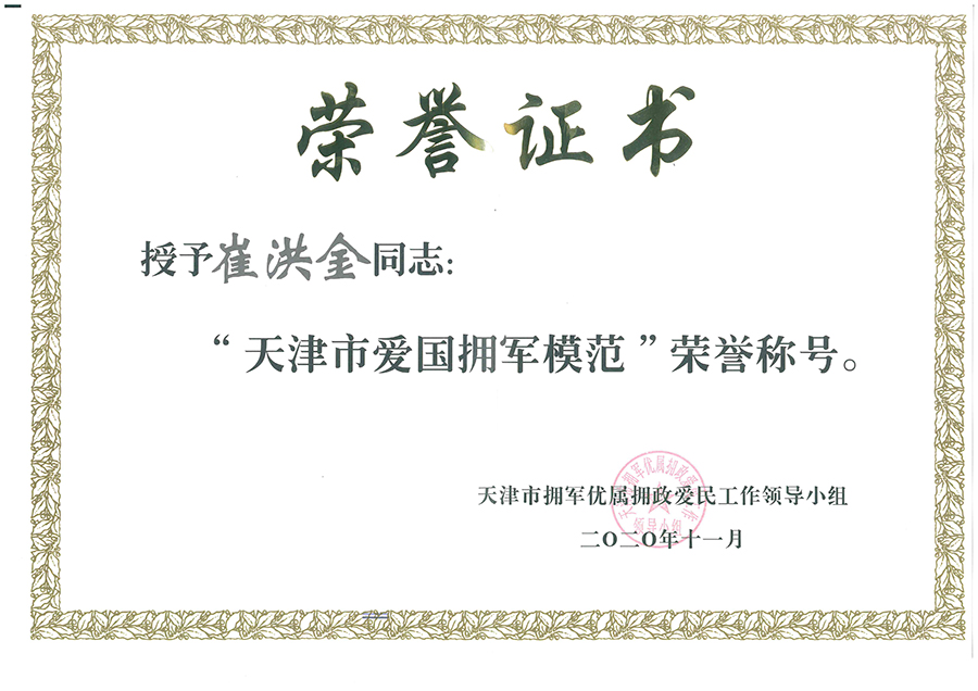 15日2020-12喜訊:12月15日,天津市擁軍優(yōu)屬擁政愛(ài)民工作領(lǐng)導小組授予安達集團黨委書(shū)記、董事長(cháng)崔洪金“天津市愛(ài)國擁軍模范”榮譽(yù)稱(chēng)號,以表彰多年來(lái)崔洪金同志及安達集團為退役軍人事務(wù)等工作所做出的突出貢獻! [查看詳情]